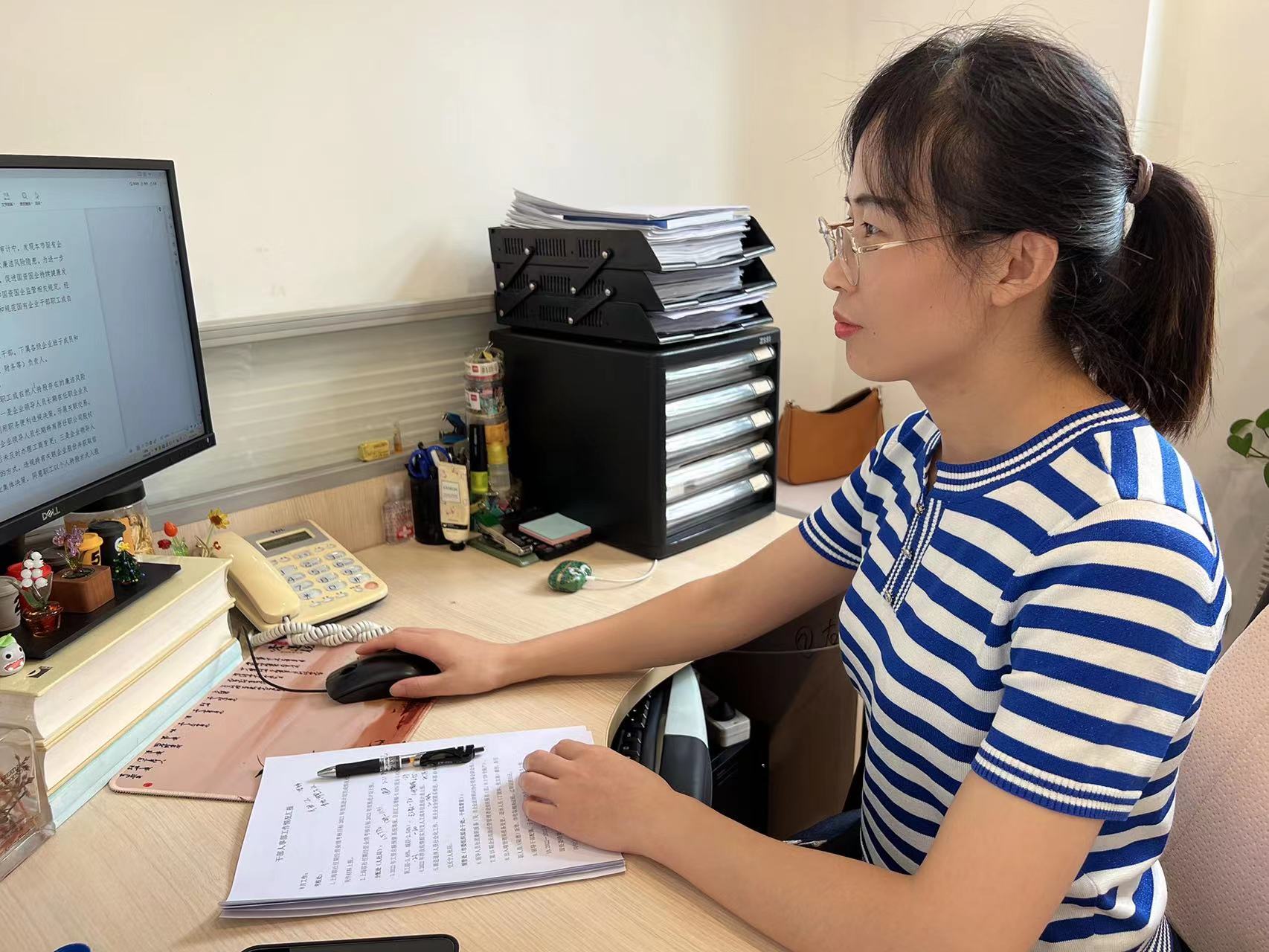 现任物业管理部主管。在工作中,为保质保量完成预定任务,不惜冒着40度高温天气逐一拜访租户,收集办理减免租金所需的文件资料。在抗击疫情期间,积极投身社区志愿服务,加入社区防控第一线,于平凡岗位上充分发挥共产党员模范带头作用,曾多次被评为系统内先进工作者。