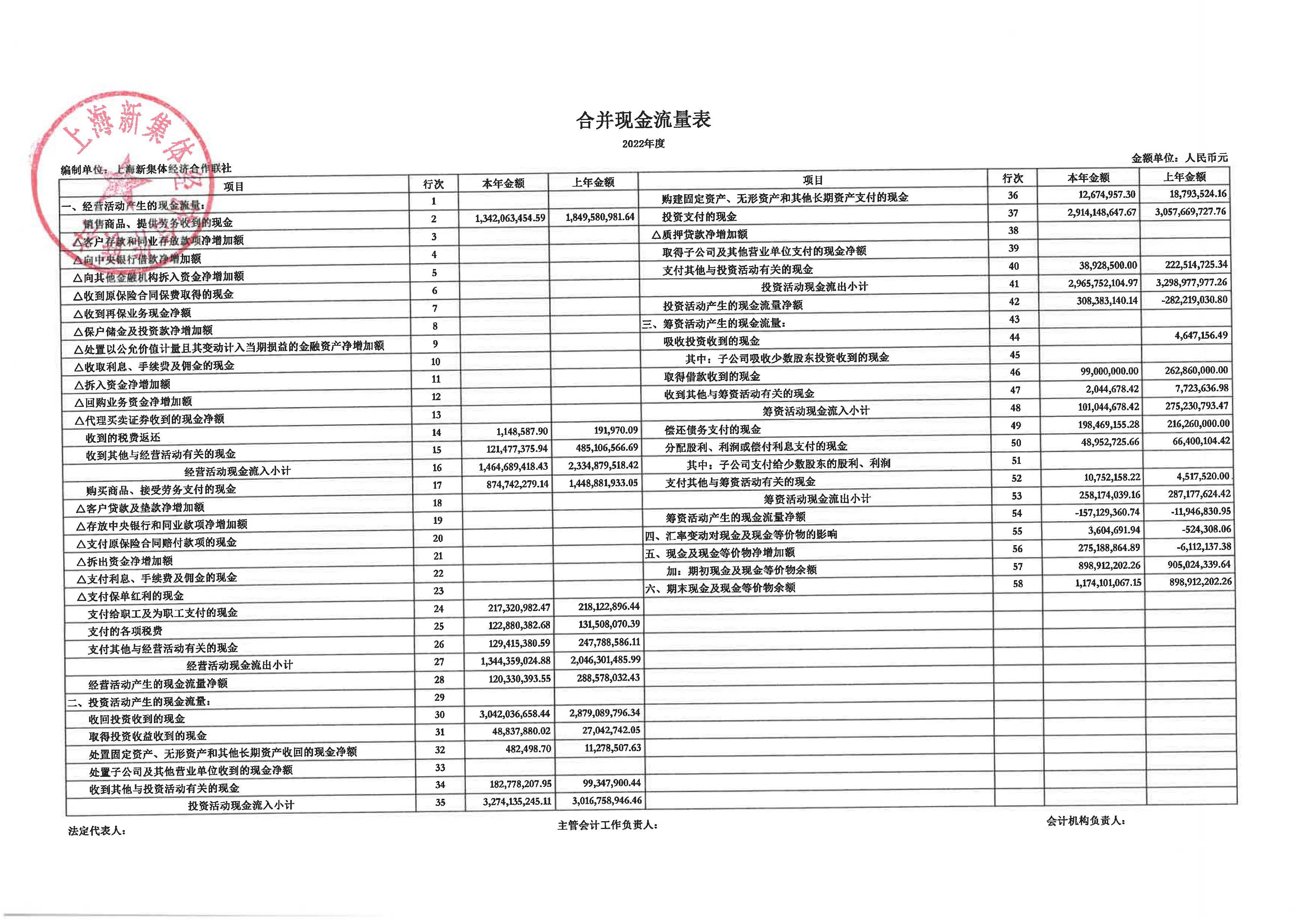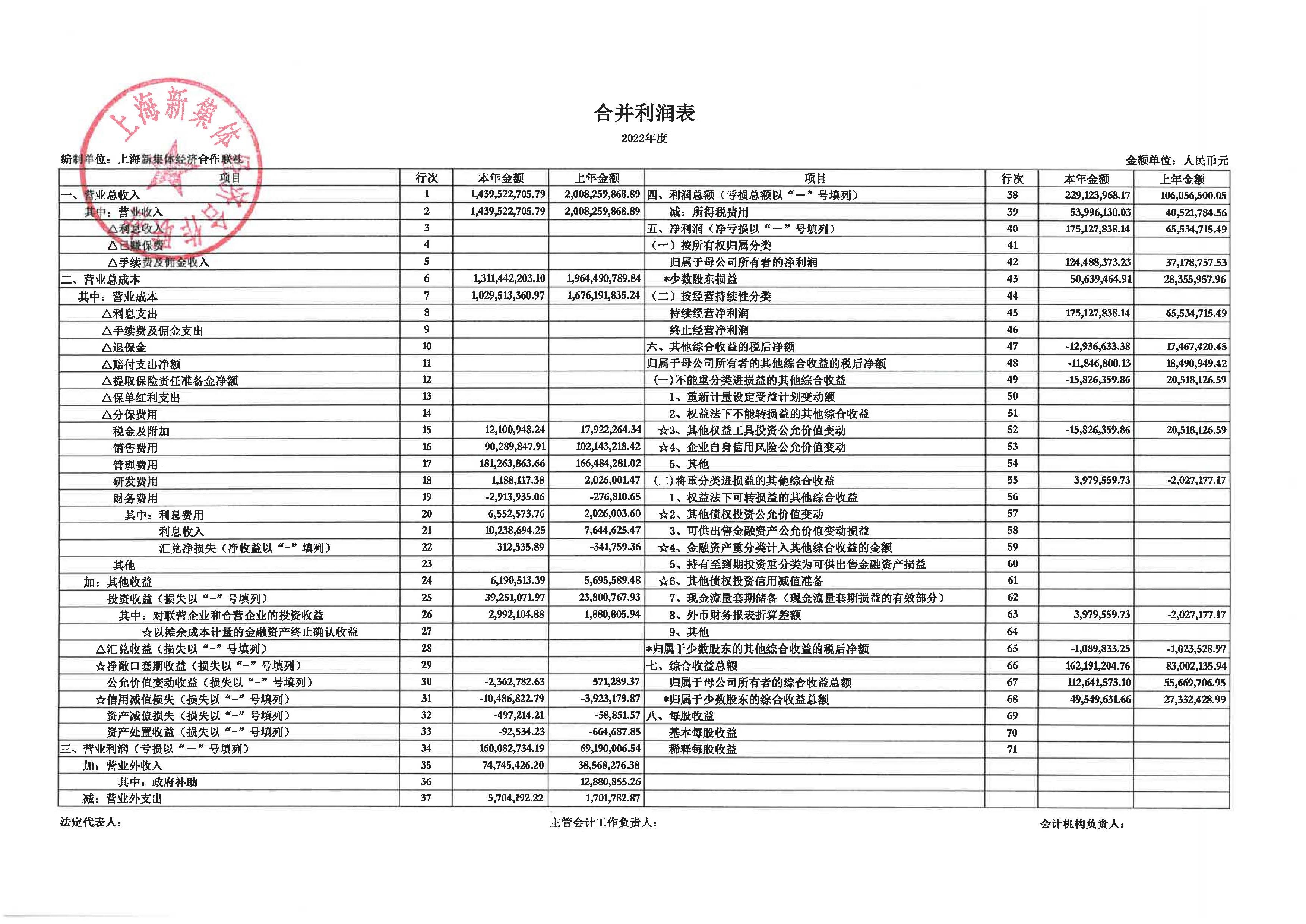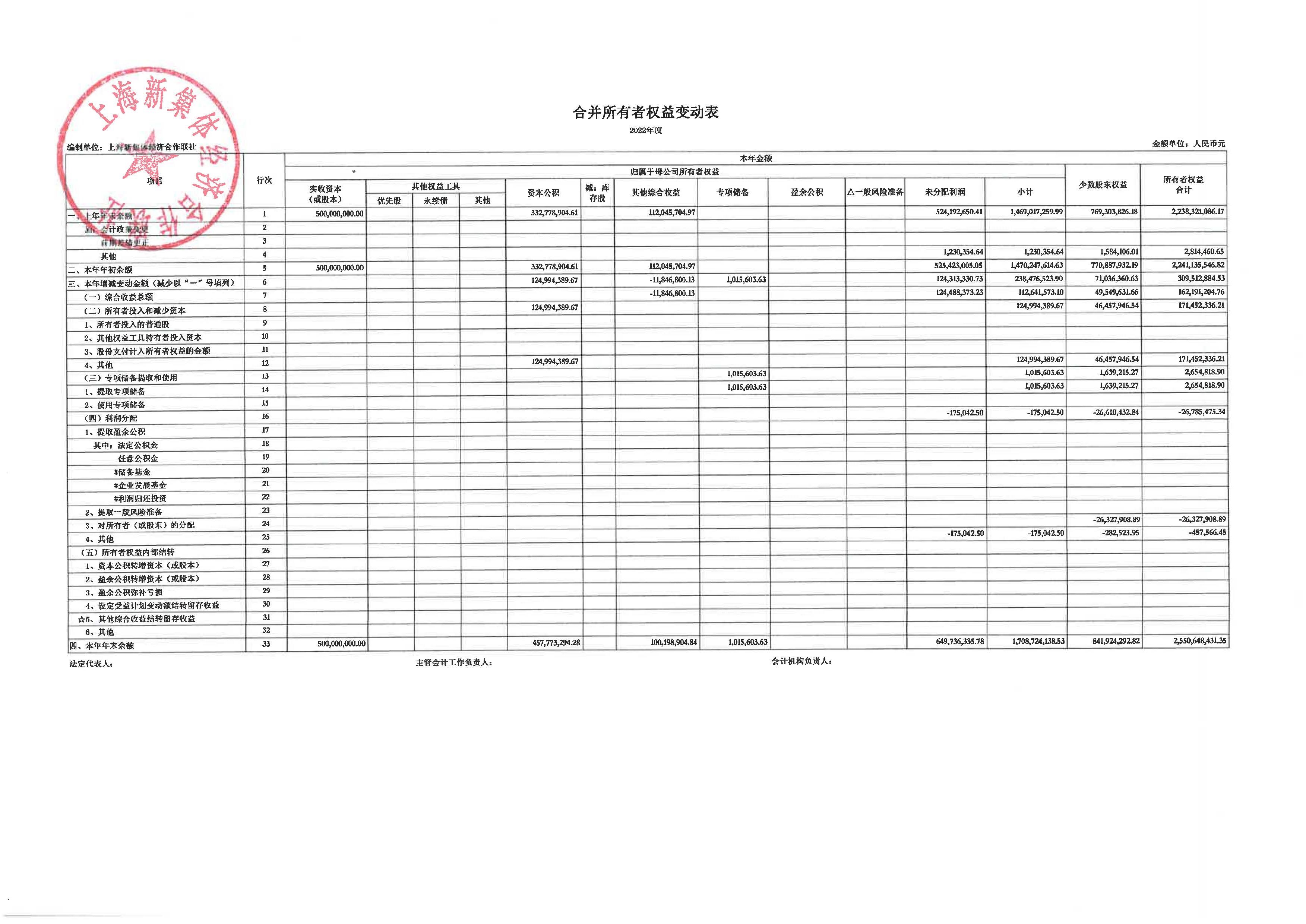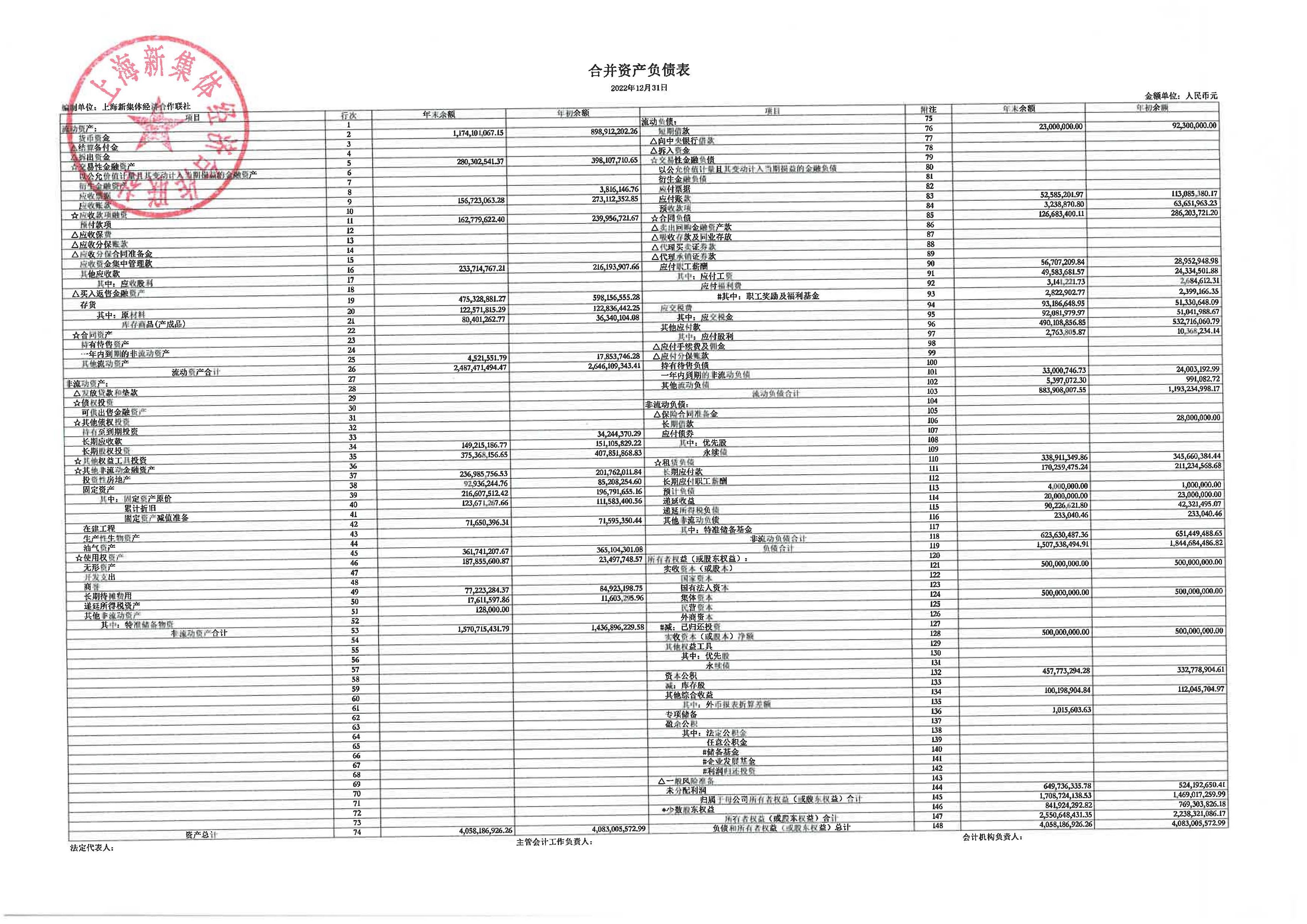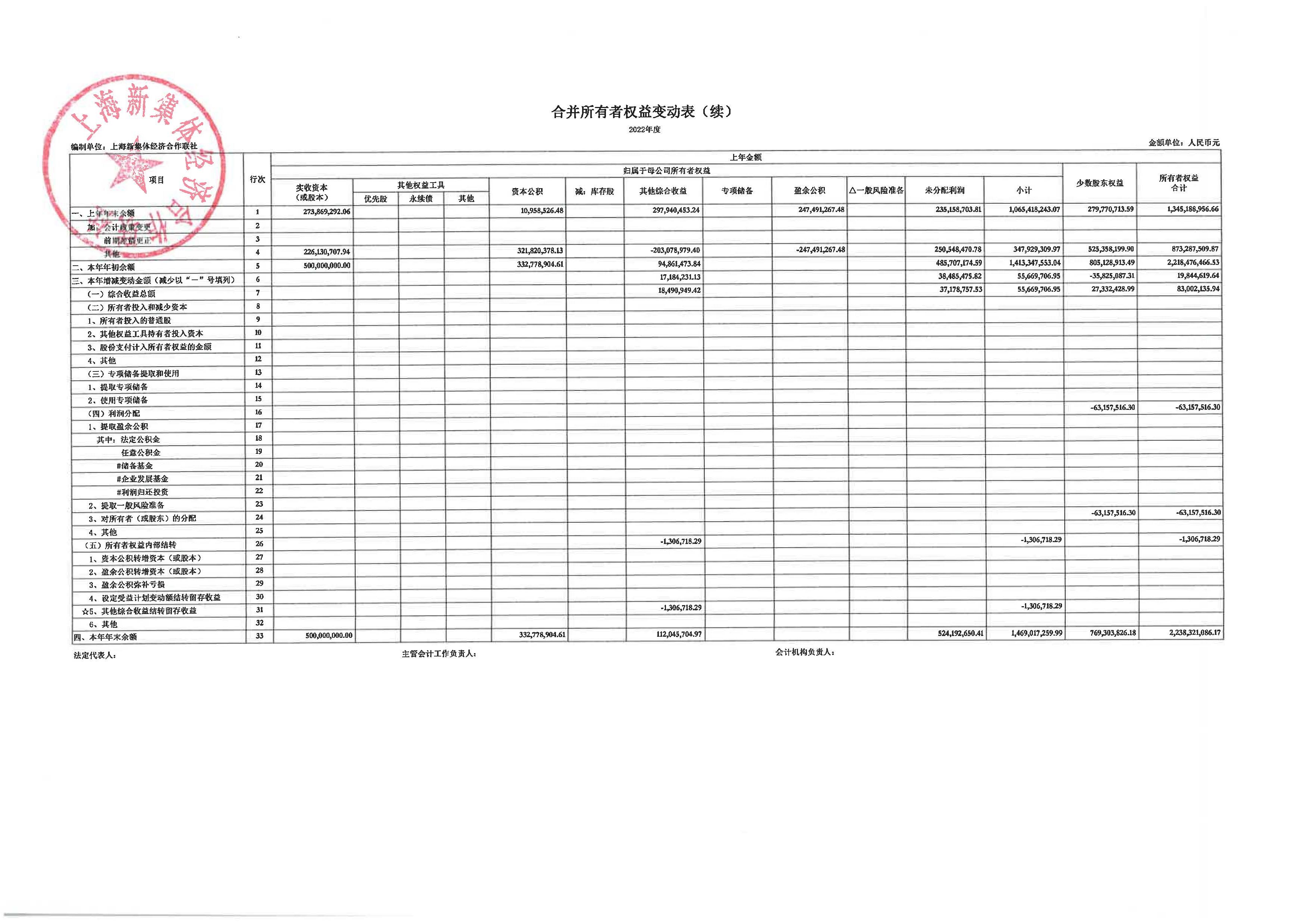 上海新集体经济合作联社2022年度财务合并报表