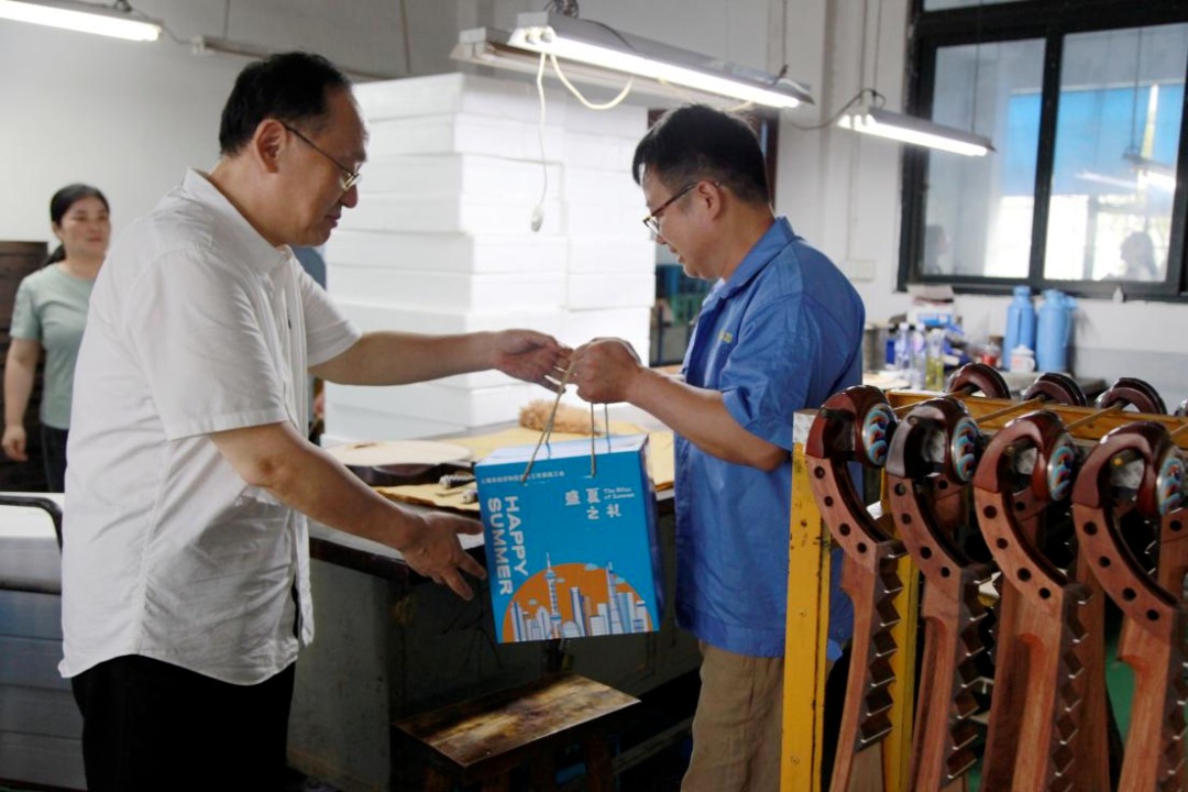 联社党委书记、主任关坚韧来到民乐一厂走访慰问,调研敦煌乐器生产经营情况,关注“敦煌筝无限,百人LIVE SHOW”直播工作开展情况,关心企业夏季高温防护工作和职工生产生活情况,叮嘱职工注意高温安全防护,并对他们不畏酷暑、坚守岗位、履职尽责的精神表示赞扬和感谢。