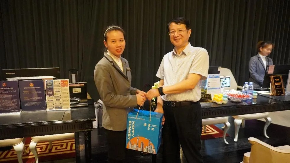 联社党委委员、副主任吴文来到新锦酒店慰问酒店各部门职工,并送上高温慰问品,要求酒店在最忙碌的暑期要关注各项设施安全运转,做好服务保障,给予旅客良好的住房体验。同时也提醒职工注意防暑休息,注重劳逸结合。