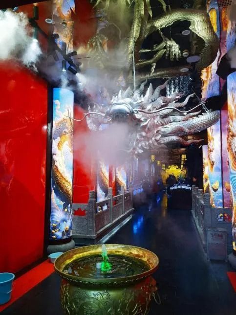 博物馆门口吐雾的镀银大龙头彰显中国传统文化,声光电的结合让顾客犹如身临其境,馆内容纳了各种非遗体验项目和活动,以“制作+展示+销售+轻体验+文化创意”场景活化的综合文化空间,连接中华传统文化与现代美学,带来沉浸式互动体验,使消费者近距离感受指尖上的“非遗”。