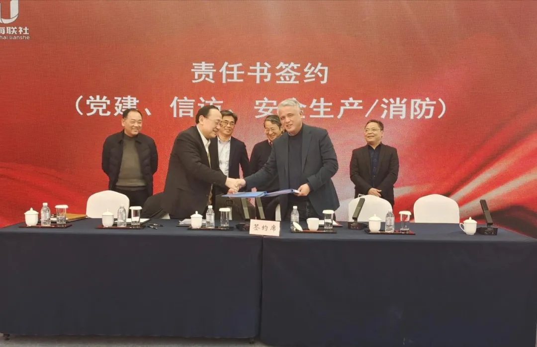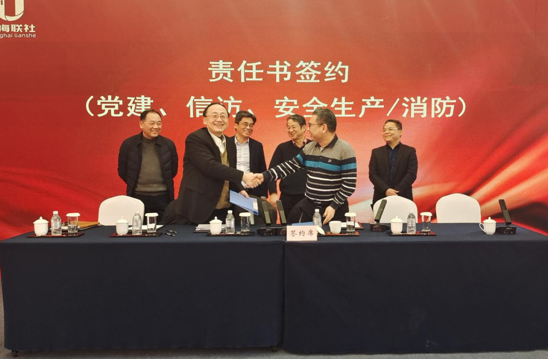 会上,关坚韧与直属党组织、二级企业党政负责人代表分别签署党建、信访和安全生产/消防等工作责任书,传达了市委第九巡视组巡视上海联社党委情况和整改意见,对联社系统巡视整改工作进行动员部署。