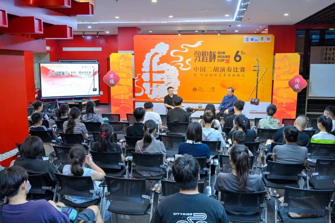 本届 “敦煌杯” 二胡比赛还突破单一赛事模式,打造了集比赛、交流、普及于一体的专业盛会,增设"2025中国胡琴艺术发展峰会"活动,配套举办了3场二胡交流分享会,3场作曲家、演奏家新作品讲演分享会,以及名家对话会,并进行了5场“敦煌杯”乐友乐享会直播活动。赛事期间,还特别设立了“敦煌”工匠坊,开展“寻找敦煌国乐宝藏——两根弦上的奇迹”敦煌国乐研学活动。