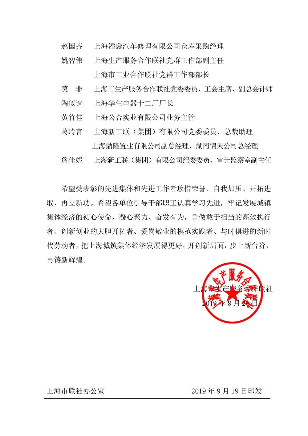 2019年联社系统庆祝中华人民共和国成立70周年先进集体和先进工作者